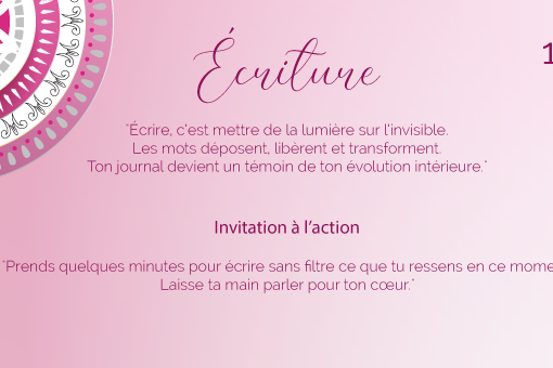 « Écrire, c’est mettre de la lumière sur l’invisible. Les mots déposent, libèrent et transforment. Ton journal devient un témoin de ton évolution intérieure. »