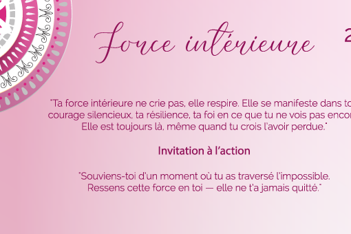 « Ta force intérieure ne crie pas, elle respire. Elle se manifeste dans ton courage silencieux, ta résilience, ta foi en ce que tu ne vois pas encore. Elle est toujours là, même quand tu crois l’avoir perdue. »