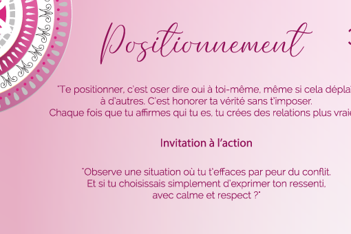« Te positionner, c’est oser dire oui à toi-même, même si cela déplaît à d’autres. C’est honorer ta vérité sans t’imposer. Chaque fois que tu affirmes qui tu es, tu crées des relations plus vraies. »